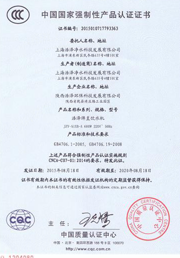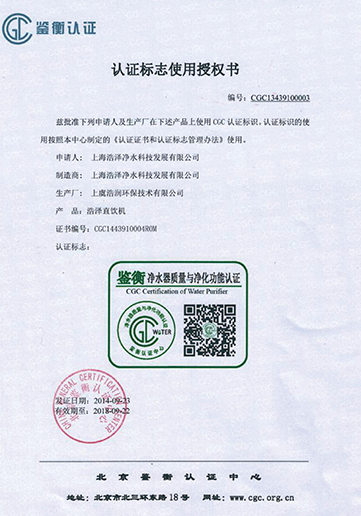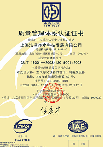 浩凈澤環保設備 中國凈水器十大品牌證書